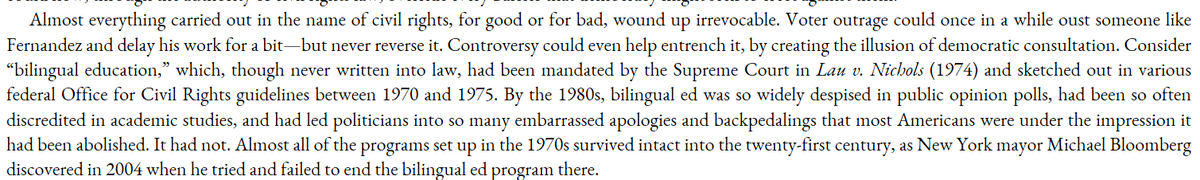 Almost everything done via Civil Rights was irreversible by the electorate. Controversy often strengthened it, by creating the illusion of democratic consultation when there was none. Democracy BTFO.