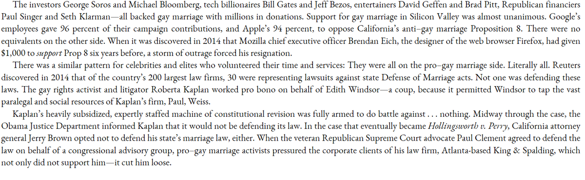 The Establishment, virtually everyone with any money or power, heavily backed gay marriage, and succeeded in forcing it down the throats of an unwilling populace. Democracy BTFO.