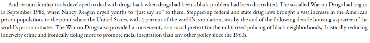 War on Drugs did more to help racial integration then any other policy, since it allowed for enforcing the law in black neighborhoods under the Civil Rights constitution. Libertarians BTFO.