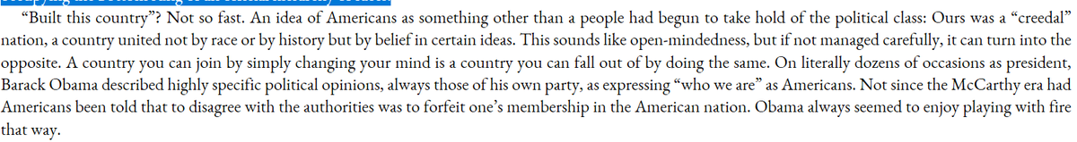 One problem with a proposition nation is people can fall out of it for having the wrong opinions. Obama repeatedly claimed that his own political positions were "who we are as Americans." Now I better understand why Obama was so uniquely hated by cons.