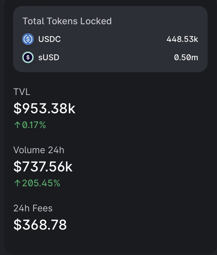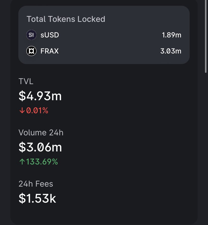 $sUSD/$FRAX .05% pool on Mainnet has paid out 1.53k in fees the past 24h, with a pool TVL of 4.93m (volume skyrocking the past week)