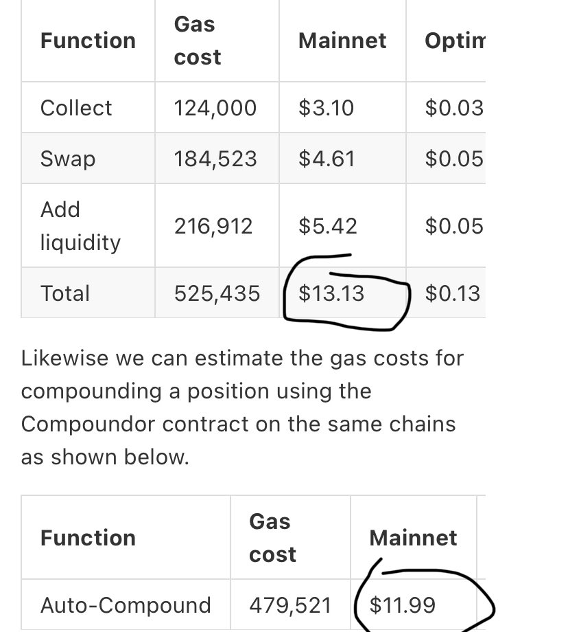 As you can see, using the autocompound function is cheaper+way more efficient than collect-swap-add (fees are assuming 1k ETH and 25 GWEI)
