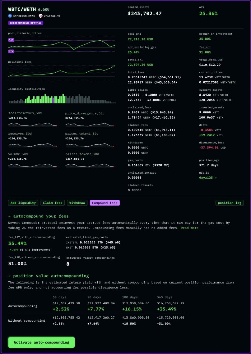With the @revertfinance compounder, users can simply provide liquidity to ANY pool at ANY level of concentration, and receive fee autocompounding into more LP tokens!