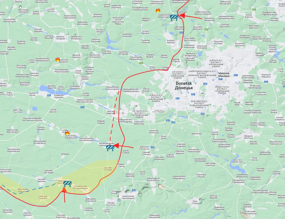 Russian forces are still banging their heads in the Bohorodychne direction. I don't think anyone has control over the town at this point, I believe UA are holding the high ground just south of the town and RU forces are north of town.