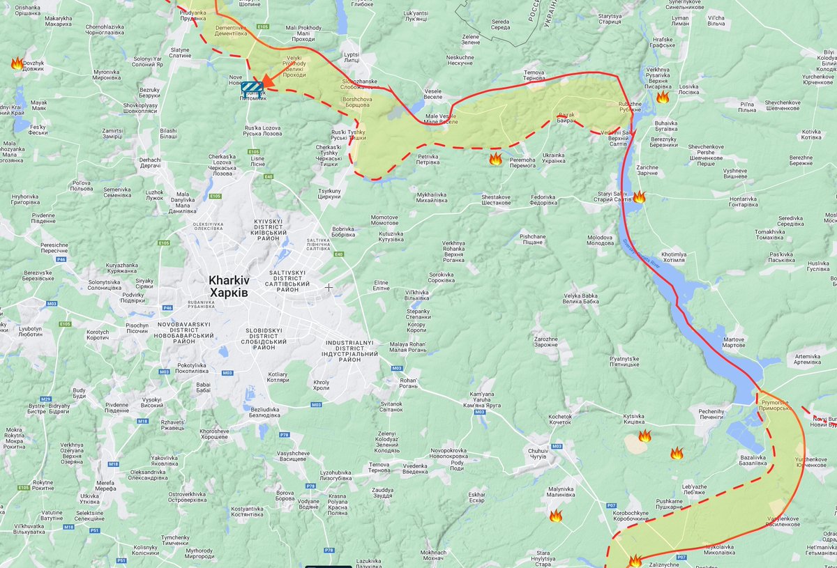 Kharkiv area. RU forces made their daily attack on Pytomnyk, without success. I had Dementiivka as RU controlled for a while, I saw an attack on RU troops in the town. Some one smarter than me pointed out it might not be RU controlled just because of that. I was wrong.