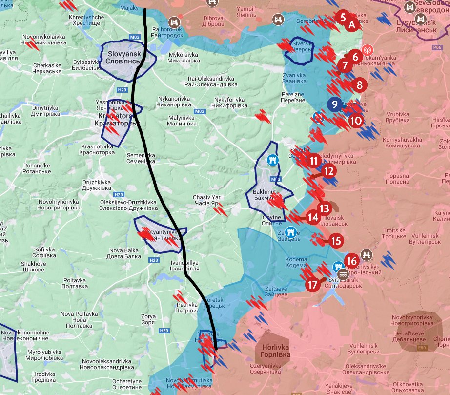 However, Russia still has not been able to capture the Berestove (10) due to liberal application of Ukrainian artillery.