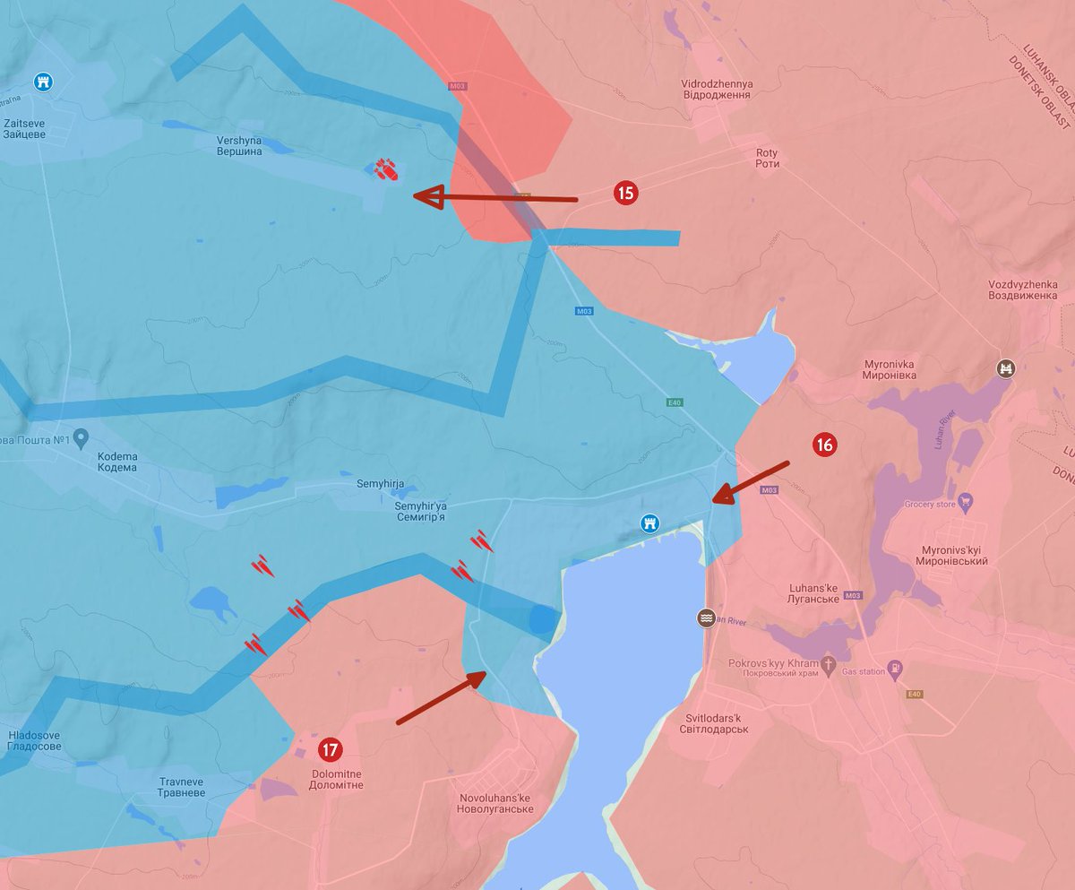 There have been attacks towards Serebryanka, which obviously have to pass through the gray area somewhere, and also attacks towards Verkhnokamyanske. On top of all of this, Ukraine claims there are two towns in Luhansk oblast that Russia has failed to capture.