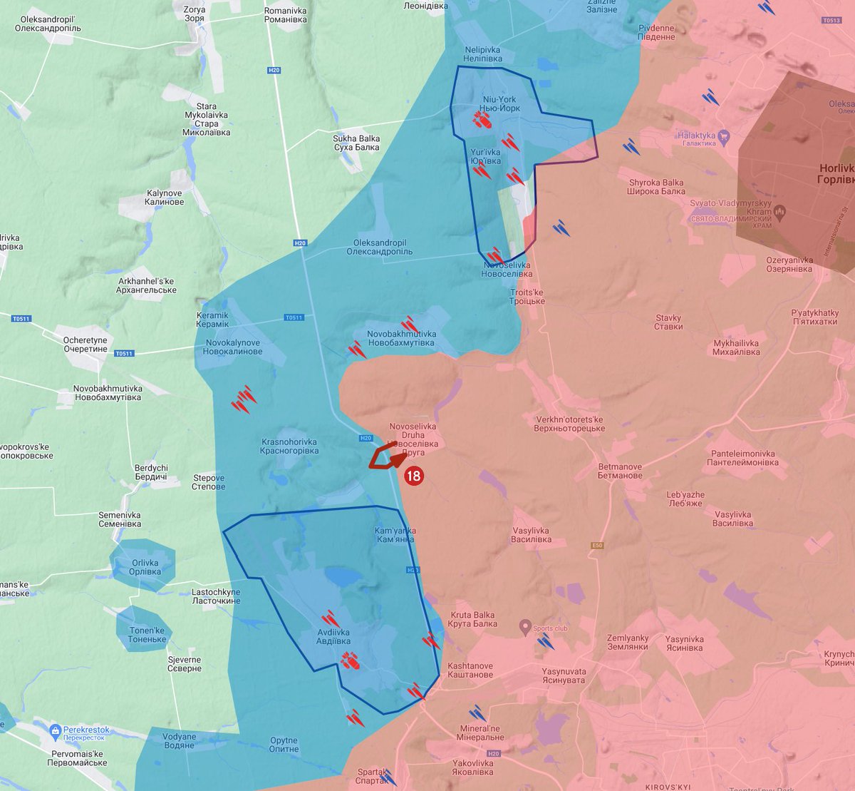 The New York/Avdiivka area: Russia isn’t having much luck attacking Kamyanka, so they decided to try a recon mission 2-3km north near Novoselivka Druha, but the recon failed and they were repulsed (18).