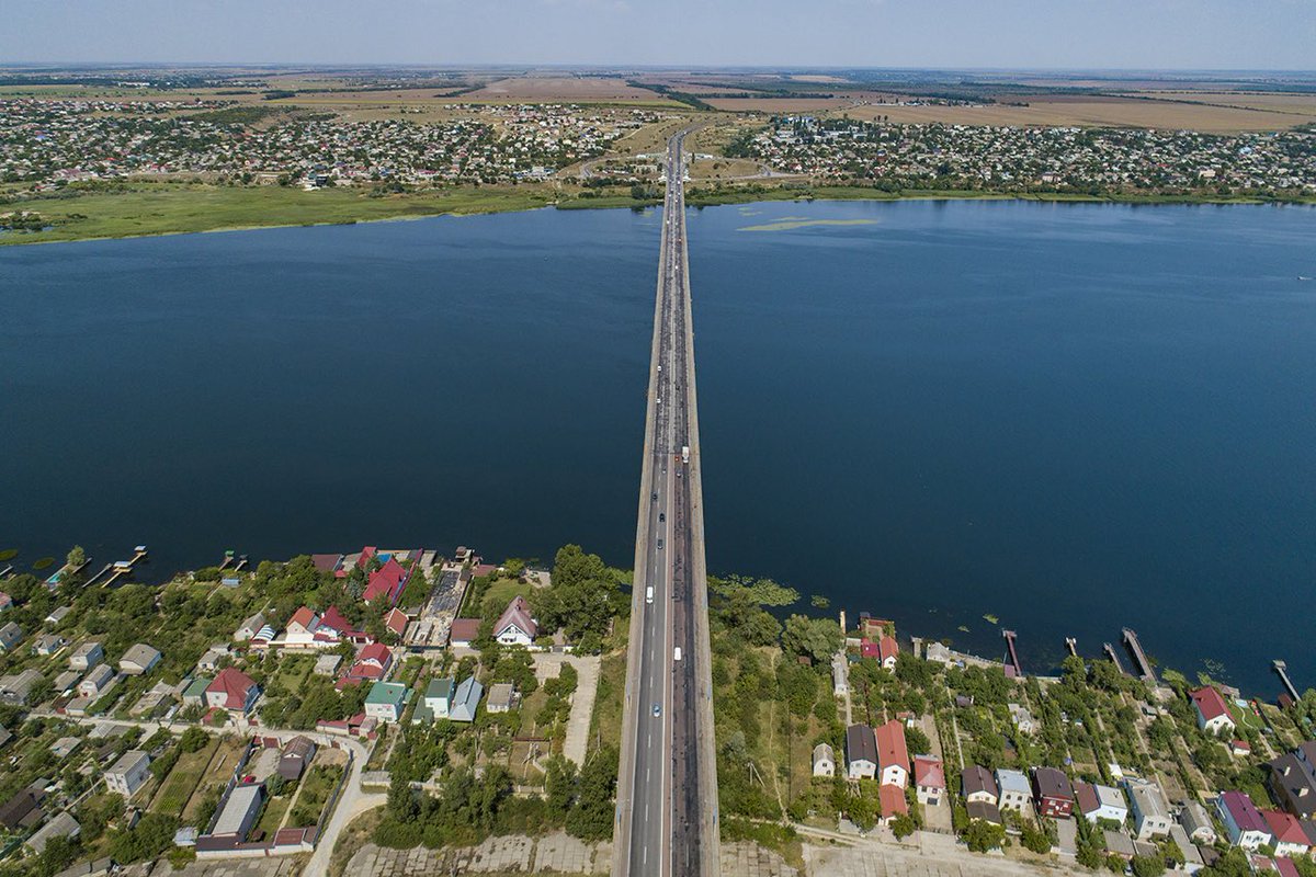 Antonivsky bridge was built in 1985. Its length over the Dnipro is 1,3 km, its width is 25 m. The total length of the structure, which passes into the bridge over the Konka River, is 10 km. The bridge connects the right and left bank of the Dnipro near Kherson.
