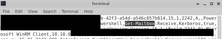 Check MSExchange Management.evtx log for EWS abuse.