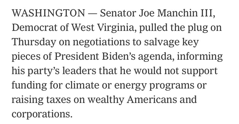The incredible thing is after months and months of claiming he was interested in a package that included tax increases and spending on climate, Manchin didn’t end the negotiations by saying: here is what I would support.
