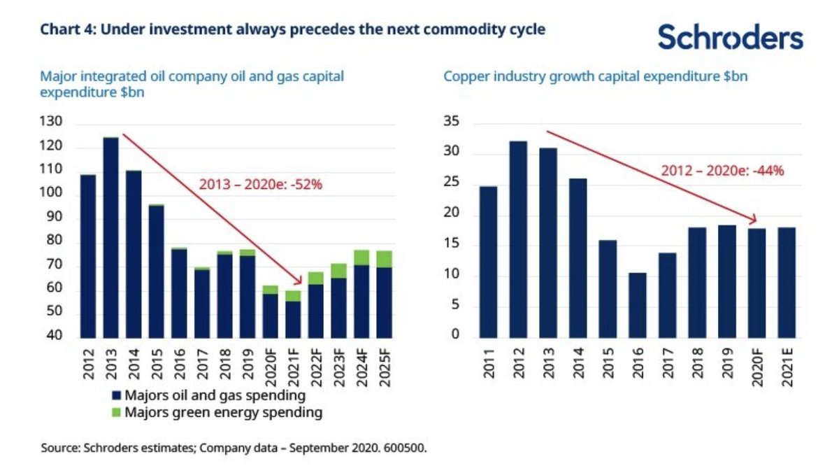 Now, in 2022, commodities are priced high, but supply is low due to underinvestment over the last five years.