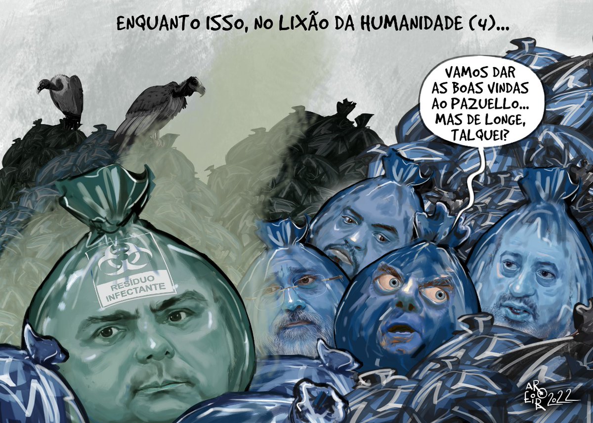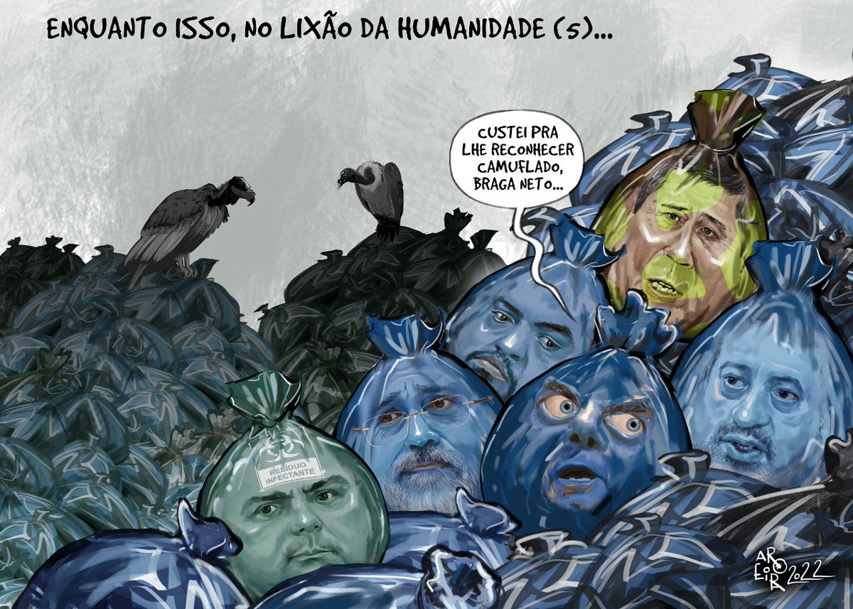 Chegou ao #LixãodaHumanidade Cláudio Castro, dublê de governo do RJ, em verdade, patrono de chacinas em favelas. Em sua gestão, ocorrem três dos quatro maiores massacres policiais do estado. Junta-se a Jair Bolsonaro, de quem é aliado, e a Augusto Aras. Por @AroeiraCartum