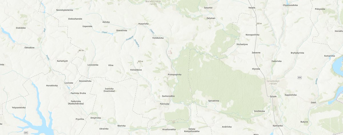 pontoon bridges (such as was discussed in a thread quoted above). UA troops now have to run westward back across the river, to try to defend the twons along the ridgeline, or risk being surrounded. Either way they can no longer threaten Izium. Chepil, Protopopivka & Husarivka are