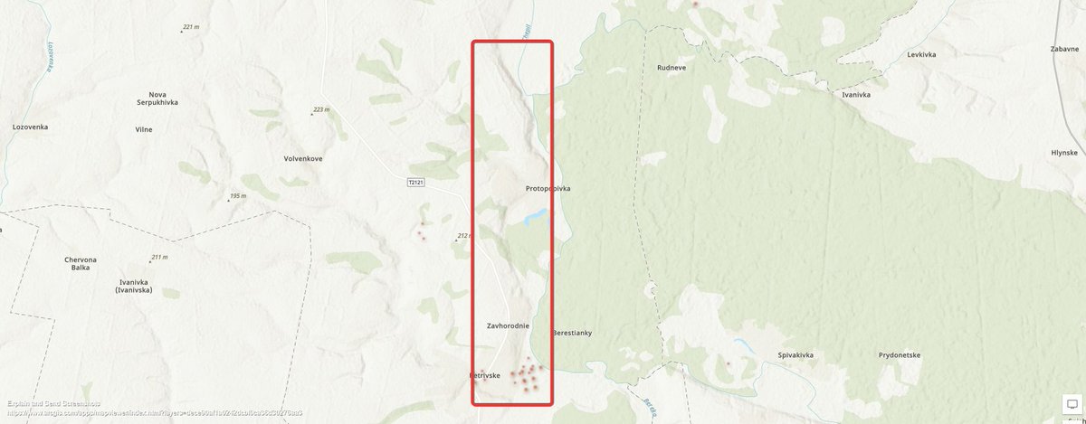 Speaking of these forests and how #Ukraine is being able to use them for defense, note this newly released video. Geolocated below. The small lake seen at the bottom of the frame is at Zolotarivka, now in #Russian hands. We last saw the targeted forest show thermal activity on