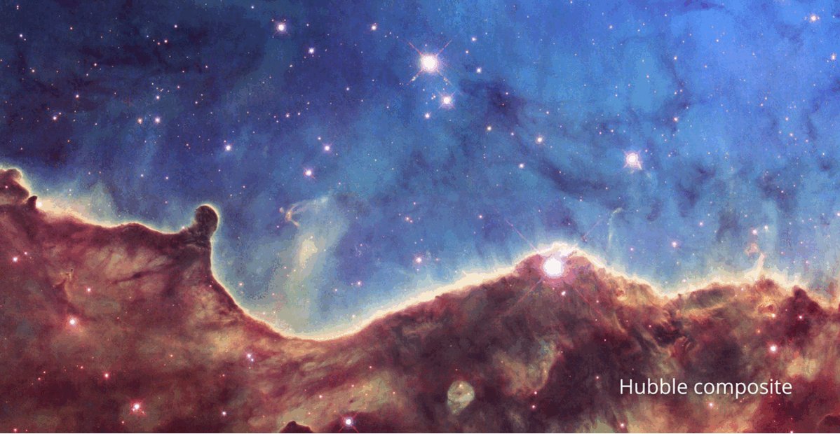 Here you can see how the new images compare to Hubble’s imagery of the Carina Nebula.