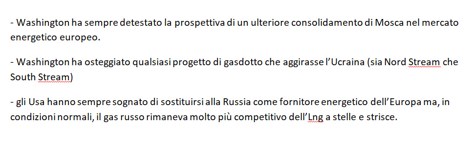 Gli USA hanno anche incoraggiato le sanzioni europee contro Mosca, spingendola a cercare altri mercati per le proprie esportazioni energetiche: “Power of Siberia” (2019), e “Power of Siberia 2” (inizio costruzione nel 2024) sono gasdotti russi diretti in Cina.