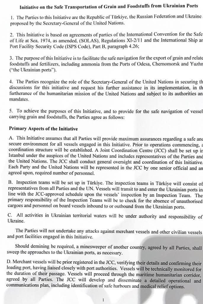 “Russia presented a package of proposals for the speedy transfer of the export of grain from the Black Sea ports”