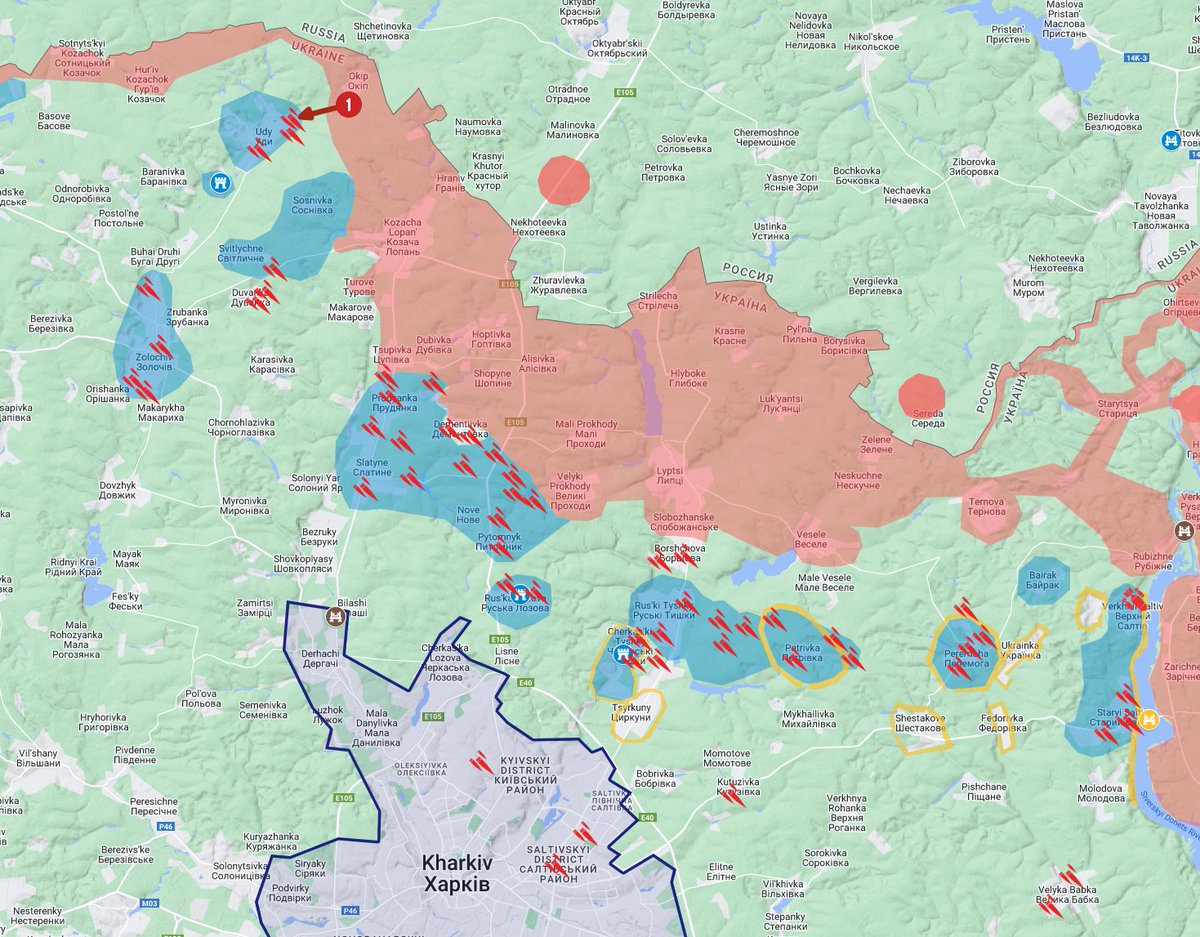 Not much happened in the Kharkiv area today, but Russia pushed a recon group towards Udy (1).
