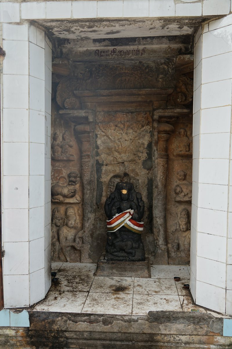 While Durga is behind a locked grill door and locked, the Dakshinamurthy is open, but ...