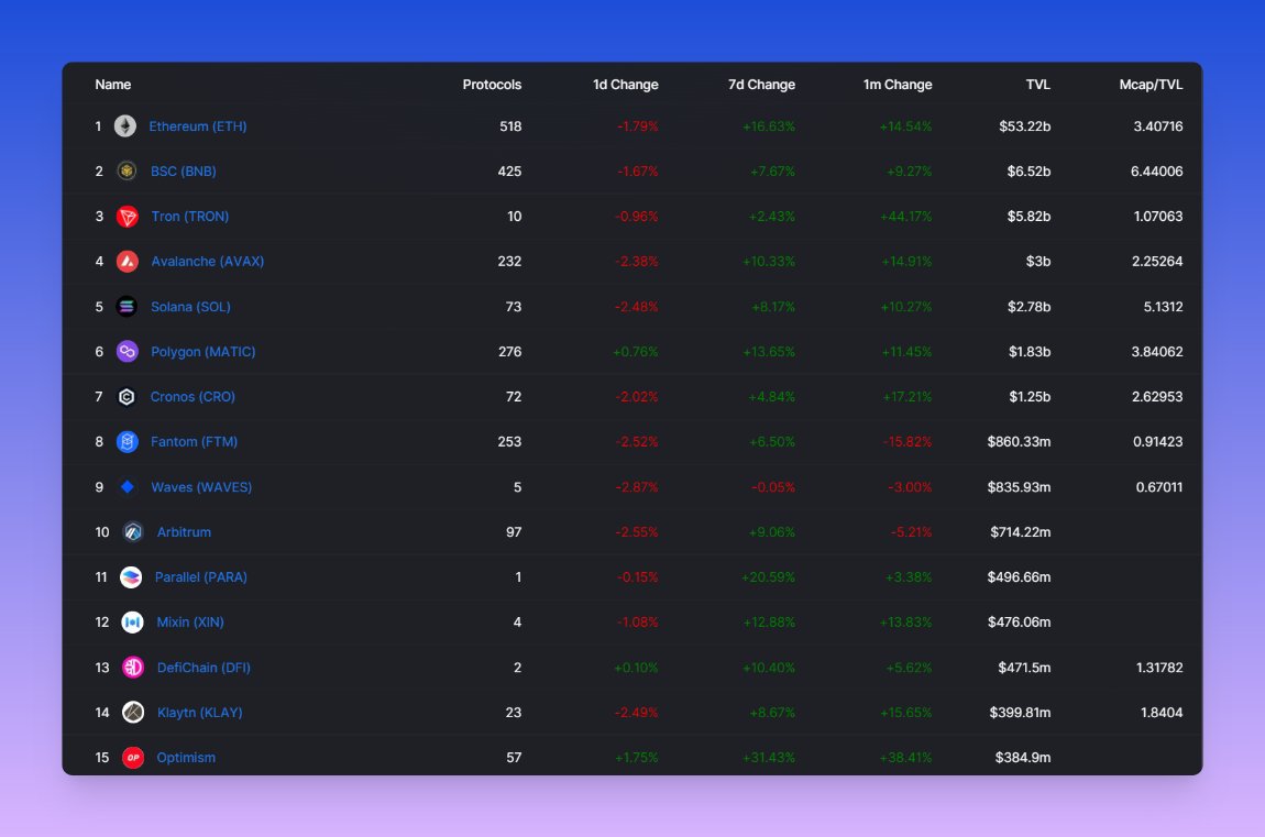 TRON is also not represented here, even though Tron has the third highest TVL after Ethereum.