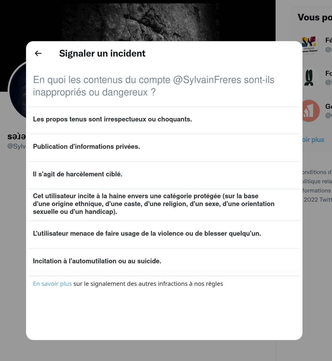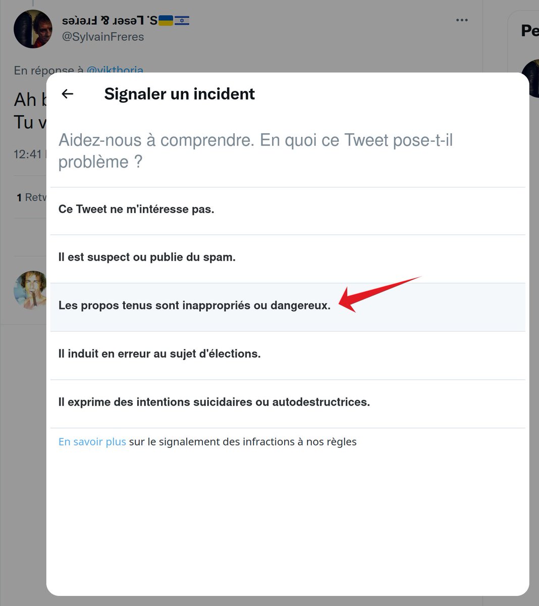 3. Si vous voyez des tweets qui vous semble problématique : signalez les.