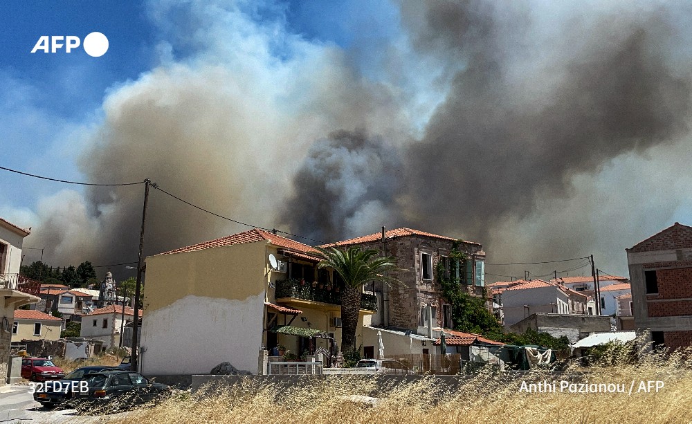 #UPDATE Greek authorities on Sunday battled three major wildfires across the country as soaring temperatures raised fears of more blazes. Officials ordered the evacuation of around 200 people from #Vrisa village on #Lesbos as the flames crept closer u.afp.com/wV5E