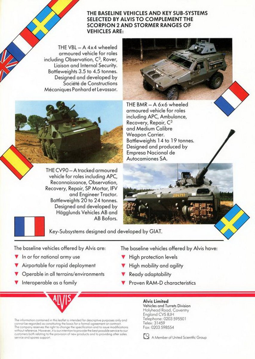 FFLAV incorporated operational experience from the 1991 Gulf War in its requirements. Alvis (at the time) recognised it didn't have all the required vehicles so came up with the idea of a European consortium. CVR(T) and Stormer would be joined by CV90, BMR and VBL vehicles