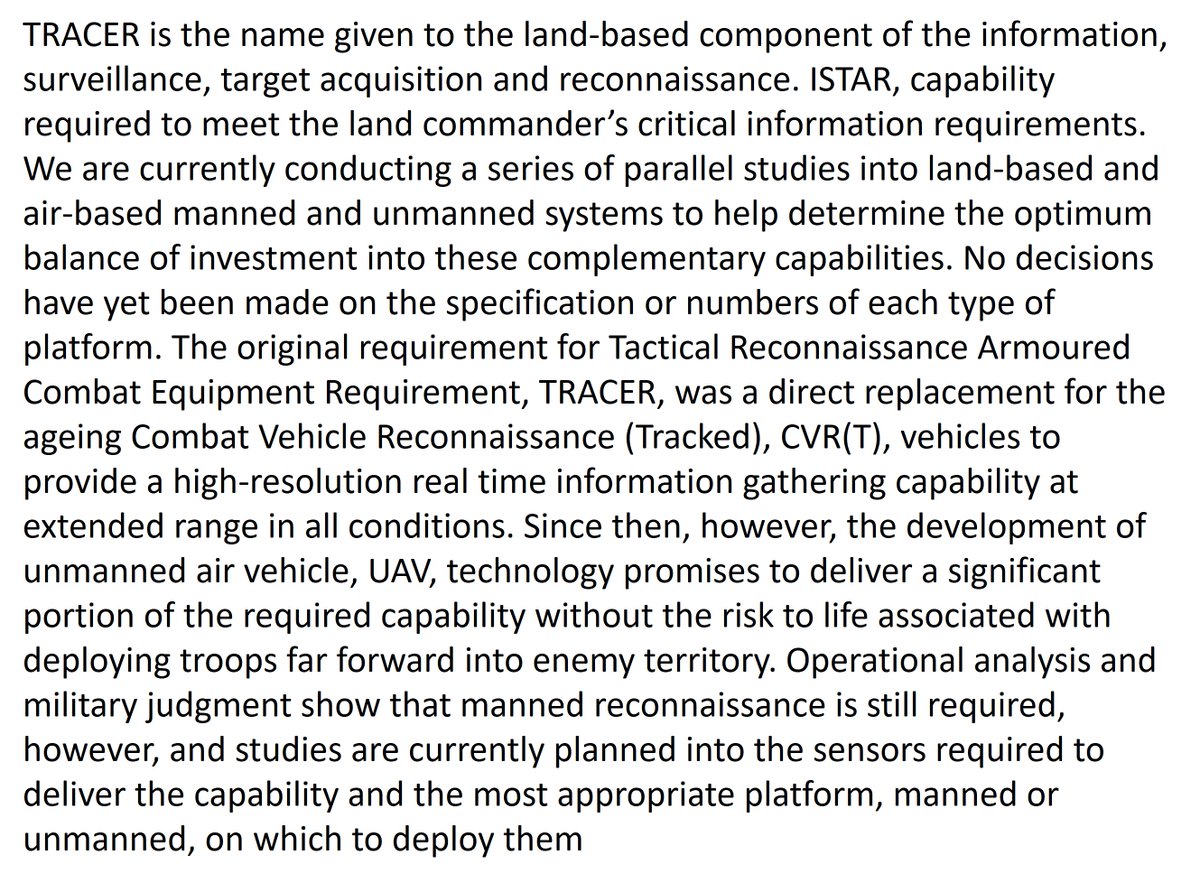 A story of missed opportunities and the dangers of military fashion following. The Tactical Reconnaissance Armoured Combat Equipment Requirement (TRACER)