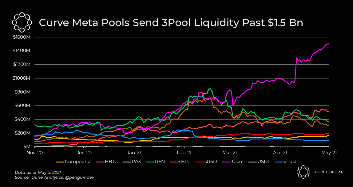 Curve pools tend to have greater TVL than Uniswap counterparts due to a) Curve's highly incentivized governance structure coordinating LP incentives (e.g. $CRV rewards) and b) the metapool's accumulation effect that grows liquidity in the 3pool.