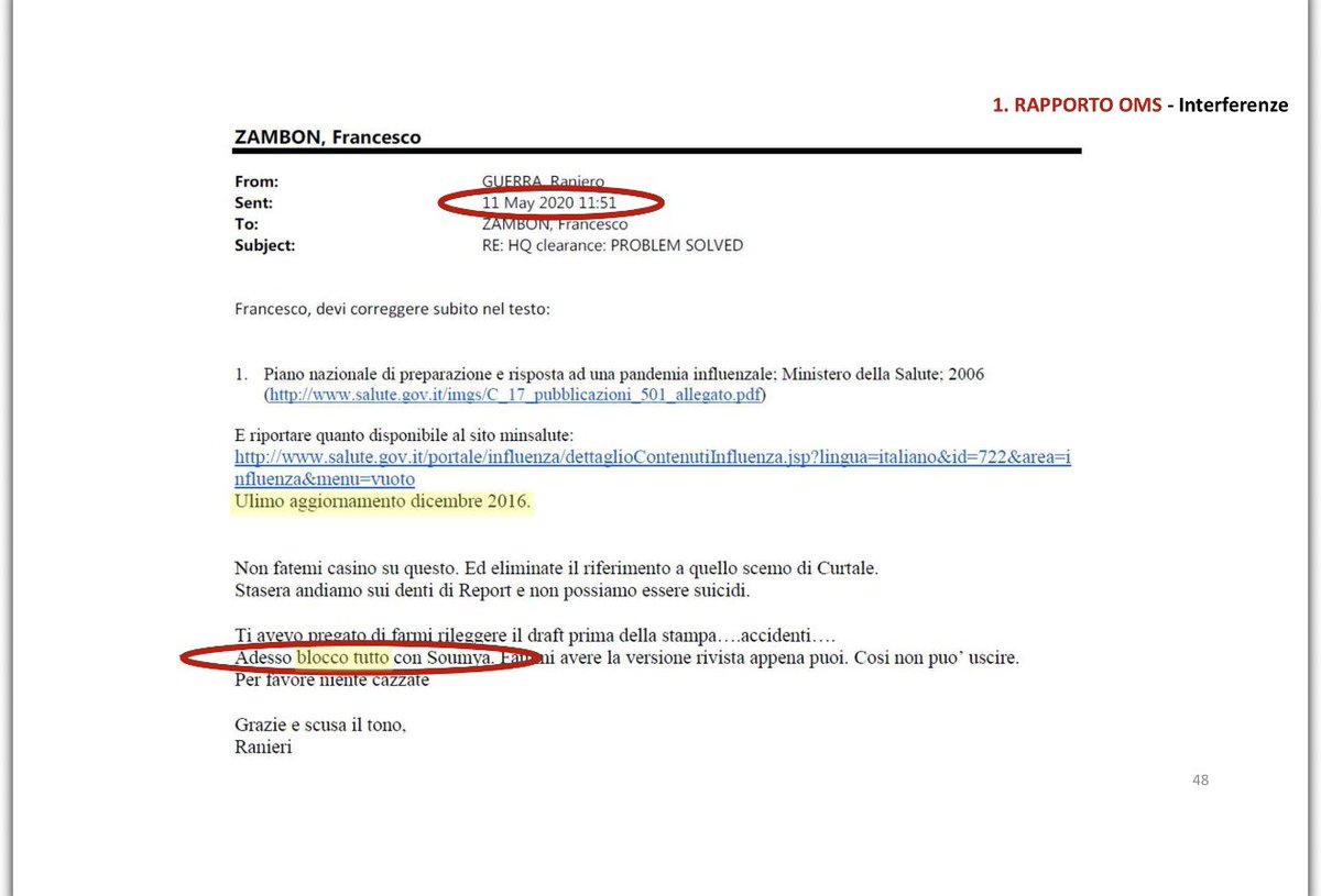 I documenti depositati in commissione covid da Zambon evidenziano le preoccupazioni del governo italiano di Conte e dell’allora ministro della salute Speranza, dei quali Guerra si era fatto portavoce al punto da disconoscere il labor del suo ufficio: “Niente cazzate, non fatemi casino” 🧵 3/