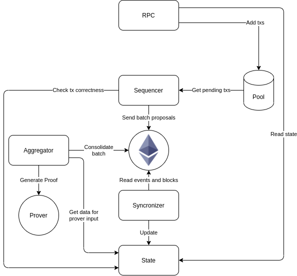- un zkNode (Sequencer, Aggregator et Synchronizer)