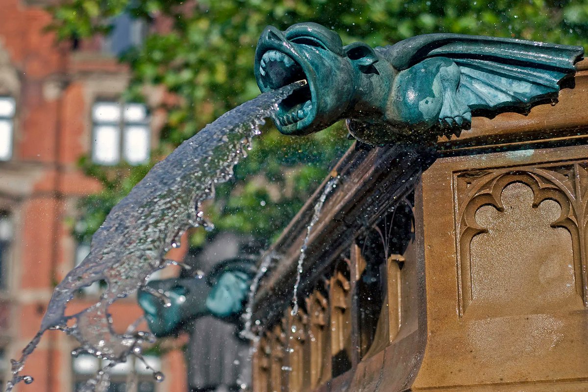 A groove is cut along the top of the statue. When rain falls, it travels along this groove and falls through the gargoyle’s open mouth onto the roads below.