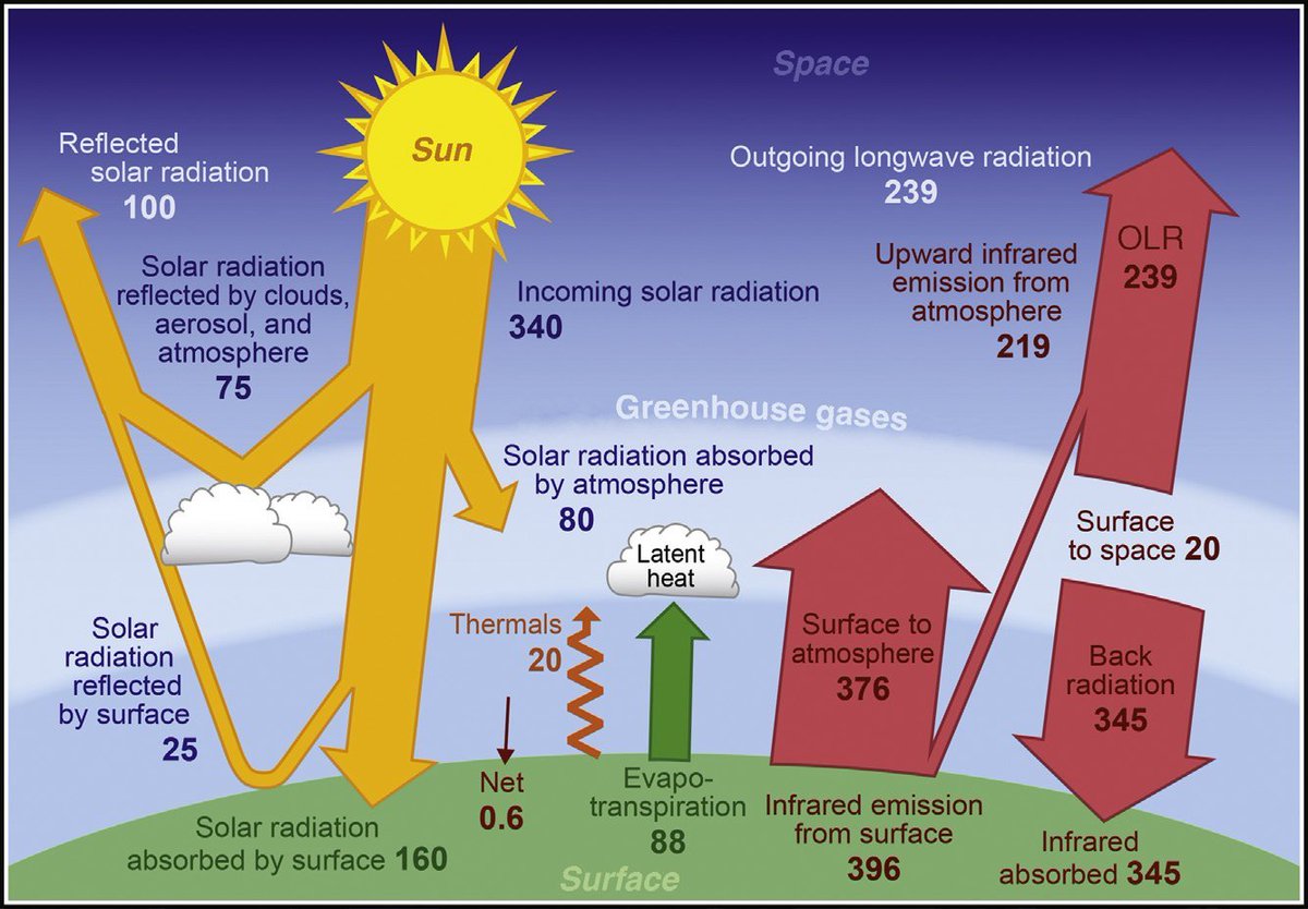 Al calentar el planeta, este emite energía térmica, sobre todo en la parte del infrarrojo. Si toda esa energía escapara al espacio la temperatura de la Tierra sería de unos -23ºC, pero la atmósfera impide que escape tanta energía gracias al efecto invernadero.