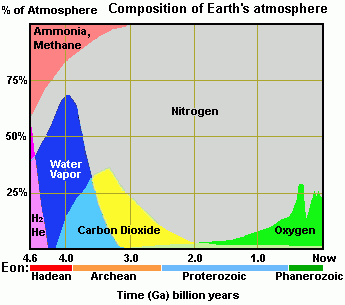 La desgasificación y el aumento del oxígeno desde hace 2.7 Ga (miles de millones de años) hicieron que disminuyeran de forma dramática. Aún así, a una menor escala (millones de años) se fueron dando cambios en la concentración por volcanes y erosión.