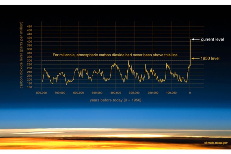 Desde la era Paleozoica (desde hace 500 Ma), ya el CO2 tiene una concentración mucho más pequeña que pudo llegar a las 2000 partes por millón (ppm). Es decir que si dividiéramos la atmósfera en un millon de partes, 2000 hubieran sido de CO2. earth.org/data_visualiza…
