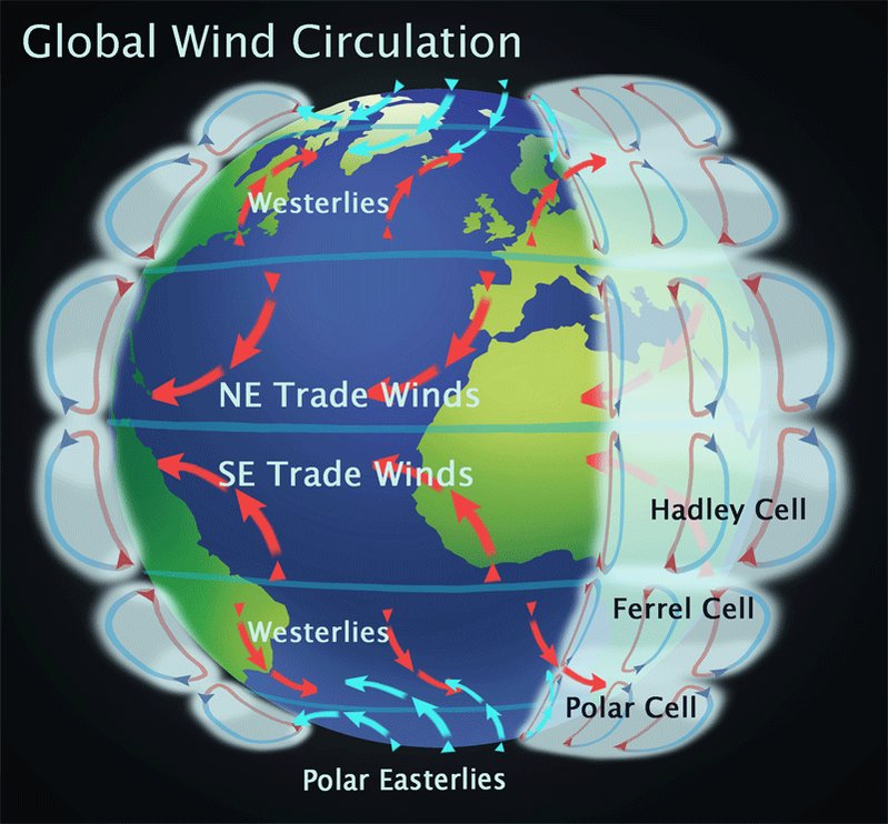 Lo primero es ver qué es eso del anticiclón de las Azores. En climatología hay un modelo que describe cómo se mueven en promedio los vientos del planeta en las tres direcciones, la circulación general, y que está compuesto de 3 células.