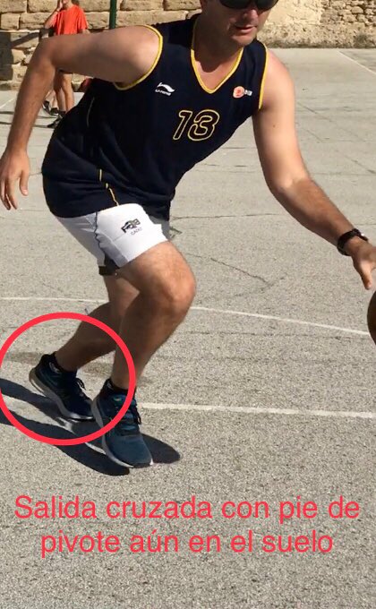 ¿Cómo se puede arreglar esto? Yo propongo dos maneras: 1. Soltando el balón más rápido (antes de levantar el pie de pivote). Es el problema que siempre hemos tenido en Europa con la salida abierta (solucionado a menudo lanzando el balón a mano cambiada). 2. Fintar en la parada: