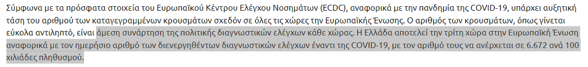 Ας δούμε λίγο τις επιμέρους αιτιολογήσεις (δικαιολογίες) της απόφασης αυτής. 1. Κάνουμε πολλά τεστ σε σχέση με άλλες χώρες.