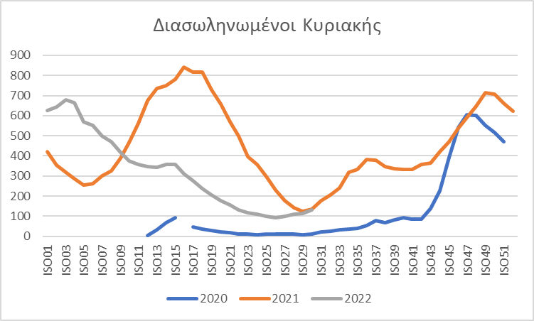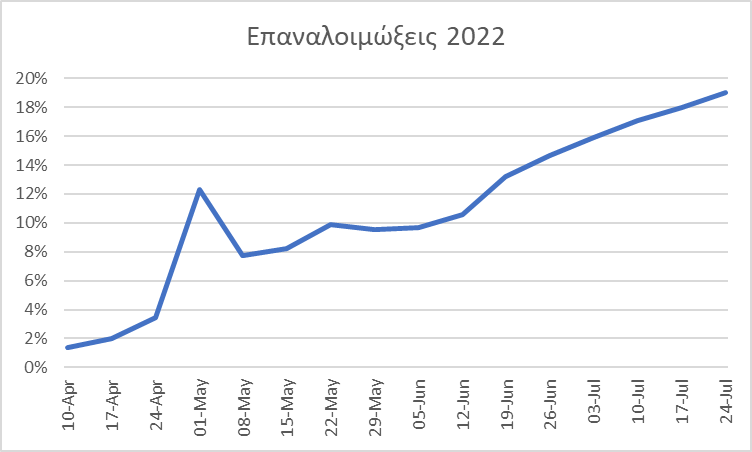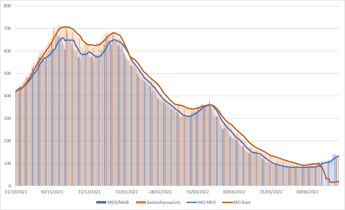 Το συγκεκριμένο data point το έχουμε από 6/4/22 που άρχισαν να το δίνουν, οπότε δεν υπάρχει συγκριτικό. Επίσης δεν γνωρίζουμε πόσες φορές έχει μολυνθεί κάποιος, ούτε με ποιο στέλεχος.
