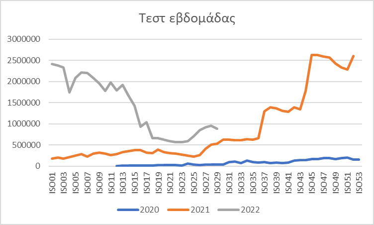 Αφορά μοριακά + ράπιντ (ιδιωτικά+ΚΟΜΥ), δεν συμπεριλαμβάνει σελφ τεστ.