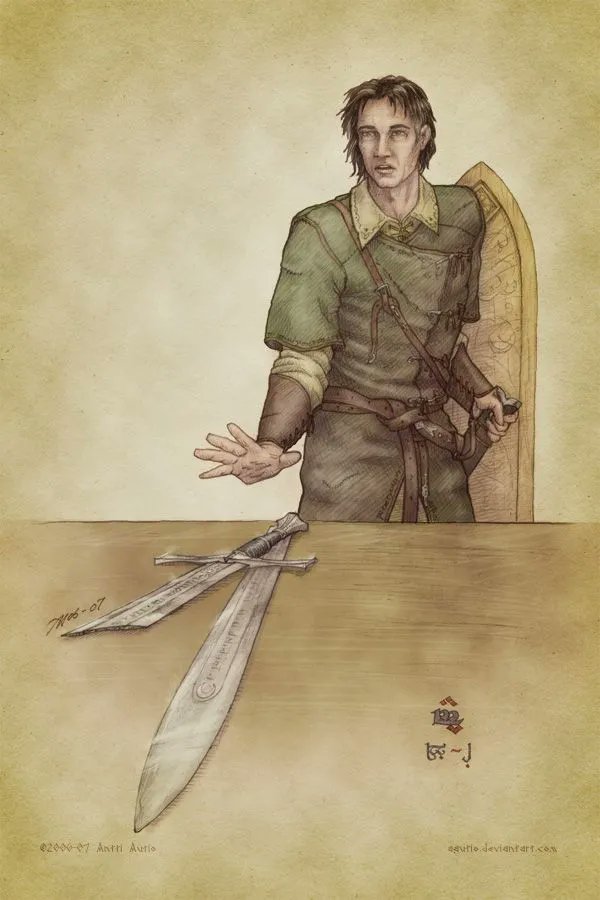 Boromir se pregunta por qué debía buscar una espada quebrada, y cuando Aragorn le pregunta si desea que la Casa de Elendil vuelva a Gondor, él contesta que la Espada de Elendil sería una ayuda...