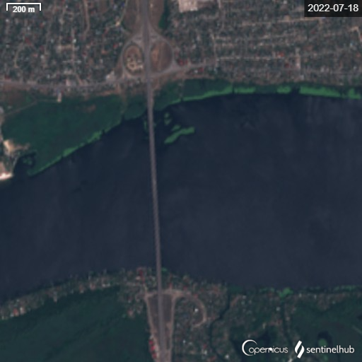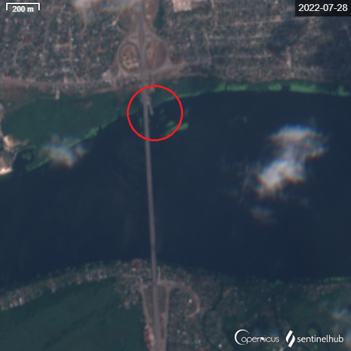 There is some kind of disturbance of the ground at the south end of the railway bridge over Dnipro. This could possibly be damage from AFU attacks or disturbance from repair work.