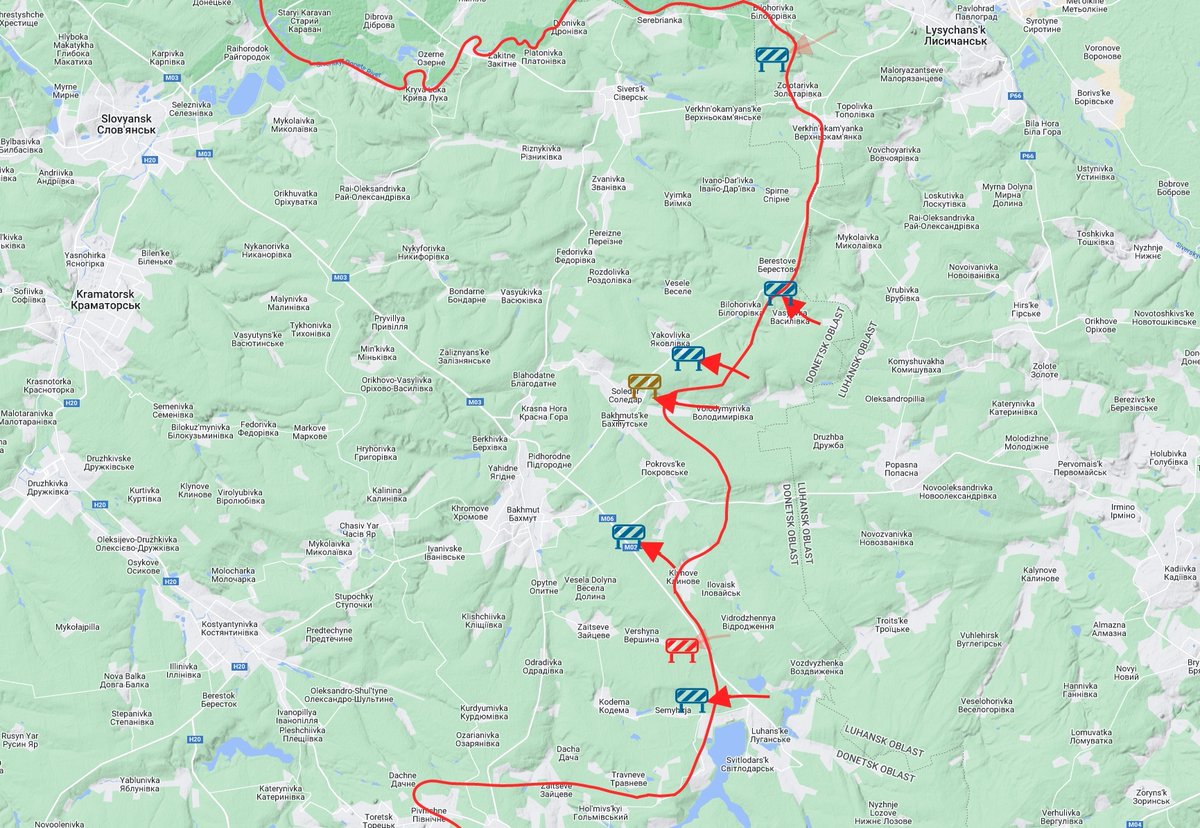 RuAF attacks were repulsed by Yakovlivka, Bakhmut and Semyhirja. RuAF recon (by combat I assume) in the area of Berestove and Nahirne failed.