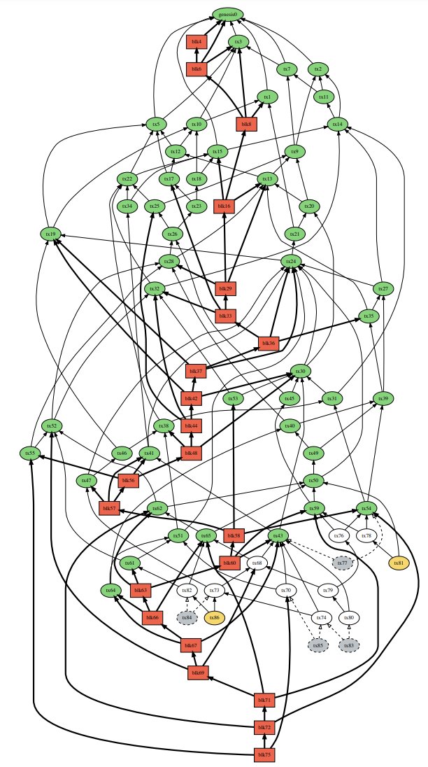 🟥 = blocks (forming a blockchain within the DAG of txs)