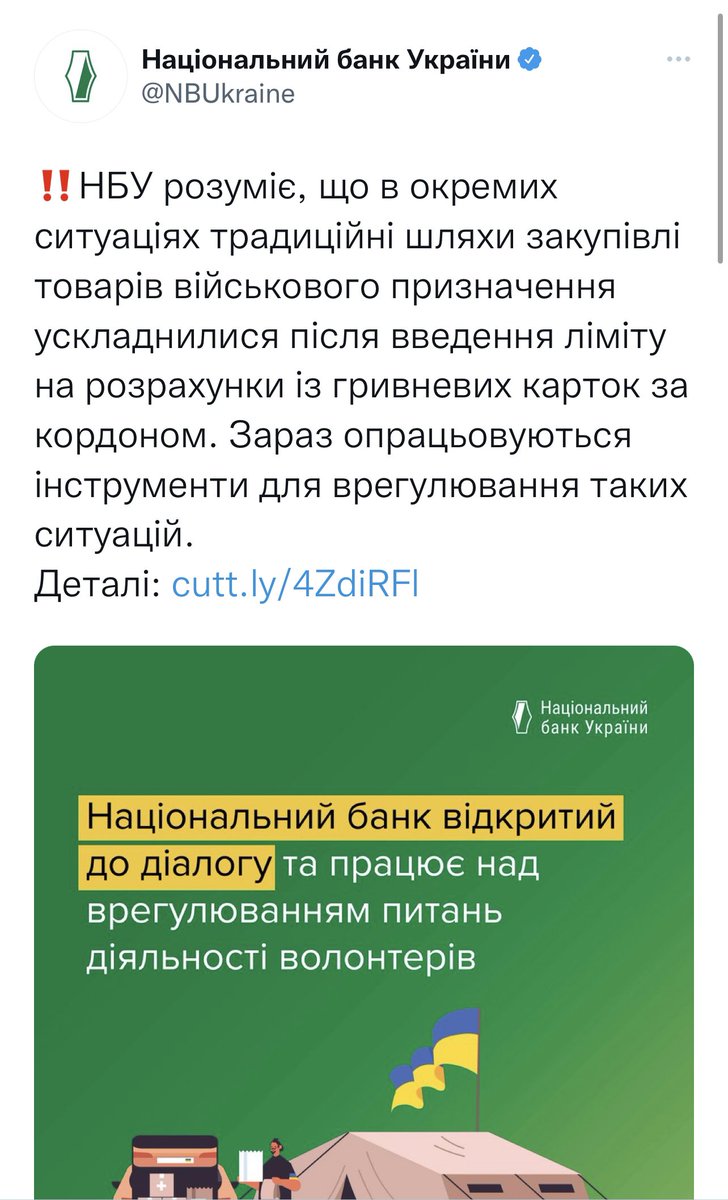 Коли журналісти стали питати про це у НБУ, там відповіли, що ліміт насправді для волонтерів не 100, а 400 к (брехня, та і це б не врятувало ситуацію), а якщо треба купувати на більші суми — робіть фонди і там лімітів нема.