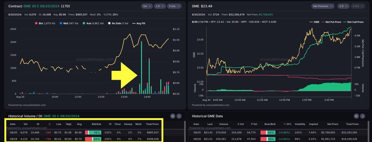 Monday saw nearly $19M in premium with almost $1M in net call premium #GME