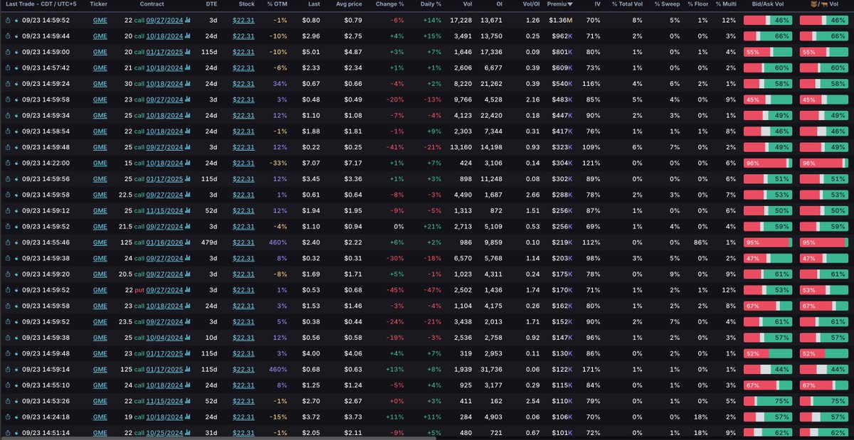 $GME GameStop top contracts traded by highest premium - tend to focus on at least $500k or higher to move the needle with #GME