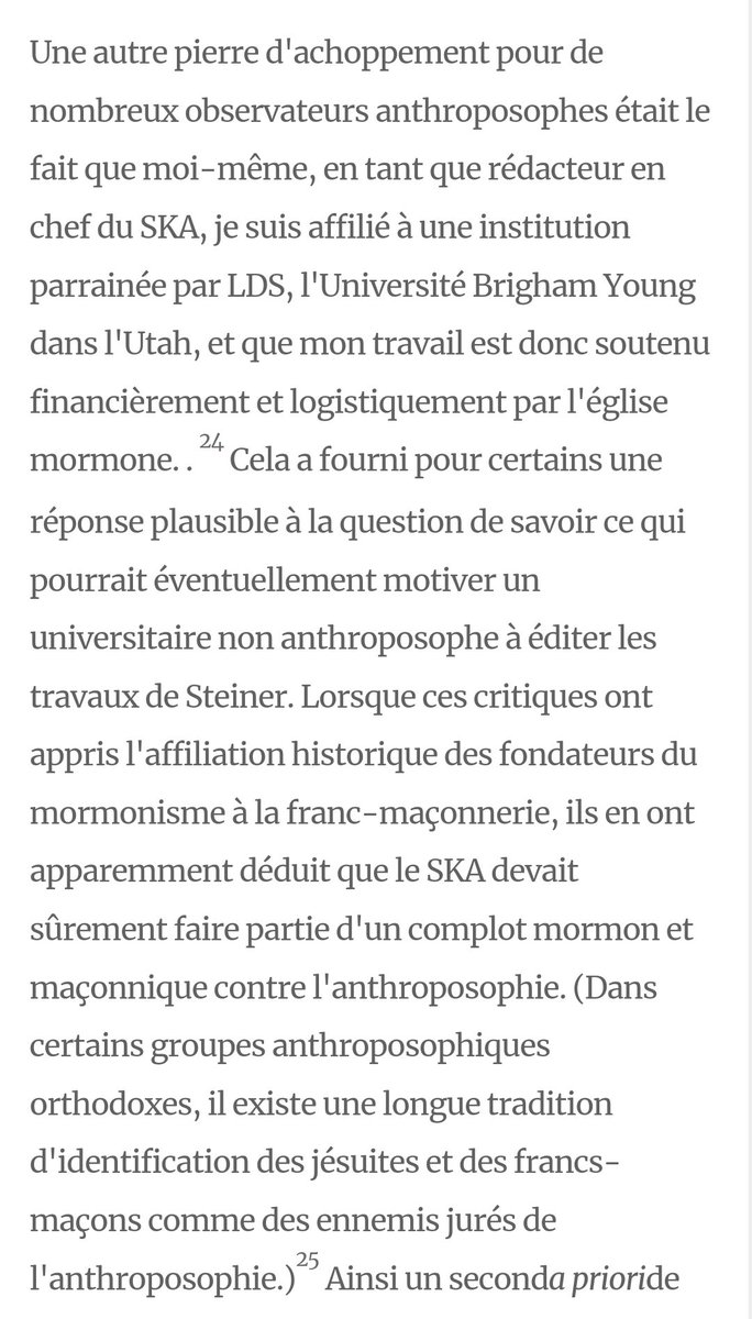 Christian Clement clame qu'il n'est pas anthroposophe et qu'il a bénéficié de fonds mormons: steiner-studies.org/articles/10.12…. Sur le second point, c'est certainement vrai: les mormons ont tout intérêt, vu leur propre cosmogonie, à s'allier à d'autres "historiens alternatifs".