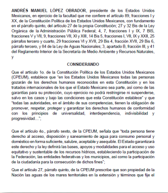 🔴⚡️Este es el decreto que firmó hoy el presidente @lopezobrador_ (que no se ha publicado en el DOF) donde el @GobiernoMX a través de la @conagua_mx establece que el agua es un derecho humano que se debe garantizar y recuerda que el agua es propiedad de la nación.